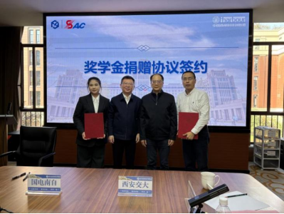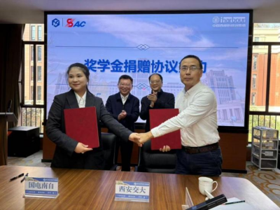 2025年11月11日,“国电南自奖学金”捐赠仪式暨产教融合交流座谈会议在创新港成功举办。国电南京自动化股份有限公司总经理、党委副书记刘颖,西安交通大学副校长柴渭、南自河海总经理、党委副书记、总法律顾问陈福锋,南自自动化党委委员、总经济师、工会代主席王学超,南自自动化研发中心电网保护控制研究所副所长陈琦,南自自动化研发中心嵌入式平台研究所副所长董贝,南自自动化研发中心资深开发设计师杨黎明,人力资源部人才开发及招聘专员周明琴;西安交通大学教育基金会副秘书长赵力、科研院产教融合与成果转化处副处长徐俊、学生就业创业指导中心副主任李江龙、电气工程学院院长杨旭、党委书记梁得亮、党委副书记宋杰、电工材料电气绝缘全国重点实验室副主任孙丽琼、宋国兵教授、焦在滨教授、常仲学副教授、袁嘉玮助理教授、研究生教学主管方丽、研究生辅导员齐蔓梓出席仪式,仪式由梁得亮主持。