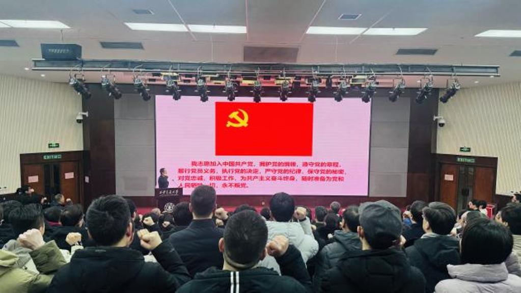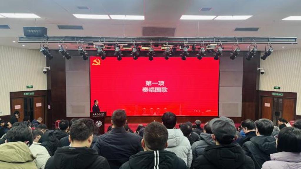 大会在庄严的国歌声中拉开帷幕,全体代表肃立奏唱,激昂旋律凝聚起奋进力量。随后,全体代表举起右拳,重温入党誓词,铮铮誓言响彻会场,彰显了全体党员不忘初心、牢记使命的坚定信念与责任担当。