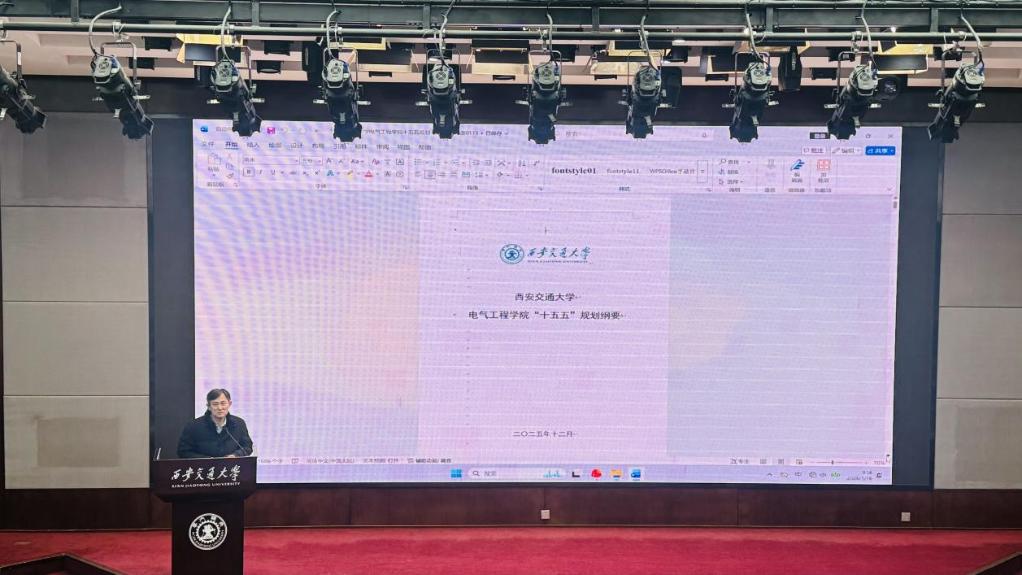 电气工程学院院长杨旭作学院“十五五”规划报告。报告立足国家战略需求和学科发展前沿,明确了未来五年学科发展的核心路径,为学院实现跨越式发展描绘了清晰蓝图。
