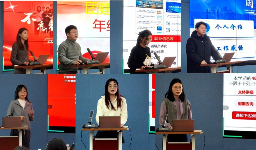 团学工作领域,周悦瑶、唐家乐从思想引领、制度完善、组织构建与评价激励四个维度,全面展示了学院共青团工作在凝聚青年、服务大局中取得的扎实成效。面对2025年秋季就业工作,叶家男、薛栩晨、咸钦元主动作为、多措并举,通过细化服务流程、拓展就业渠道,有力推动了毕业生高质量充分就业。朱雯嘉、刘亚群秉持“在干中学、在学中干”的理念,高效统筹日常行政与物资管理,持续推进工作的规范化、精细化,为学院各项日常事务的平稳运行提供了坚实保障。