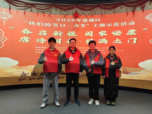 为协助基层社区开展迎新春文化活动,推动优秀传统文化在文明实践阵地落地见效,2026年2月5日,西安交通大学电气学院社会实践团队成员王思清、刘昊琰、李科、庞菲走进西安市莲湖区土门街道新时代文明实践所,参与莲湖区“我们的节日·春节”主题示范活动——“春启新程阖家安康”唐诗润春·福满土门活动,协助完成会场布置、秩序维护与互动环节组织引导等工作,与街道居民、社区干部以及快递员、外卖员等新就业群体共同迎新春、话传承,在演、写、玩、创、传的多元体验中,感受传统文化与春节民俗的融合魅力。