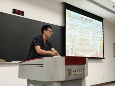 第三阶段,硕5066党支部入党积极分子龚夏围绕《筑牢中华民族共同体意识》作专题汇报。在新疆维吾尔自治区成立70周年的时代背景下,龚同学深入阐述了习近平总书记关于“筑牢中华民族共同体意识是新时代党的民族工作的主线”的重要指示精神,强调了新疆维吾尔自治区的“五大战略定位”,为新时代民族工作提供了指导思想和战略方向。通过强化民族团结和共同体意识,进一步推动了民族地区的稳定与发展。龚同学的讲解令全体党员更加深刻认识到,团结各族人民,维护社会和谐,是实现中华民族伟大复兴的关键所在。