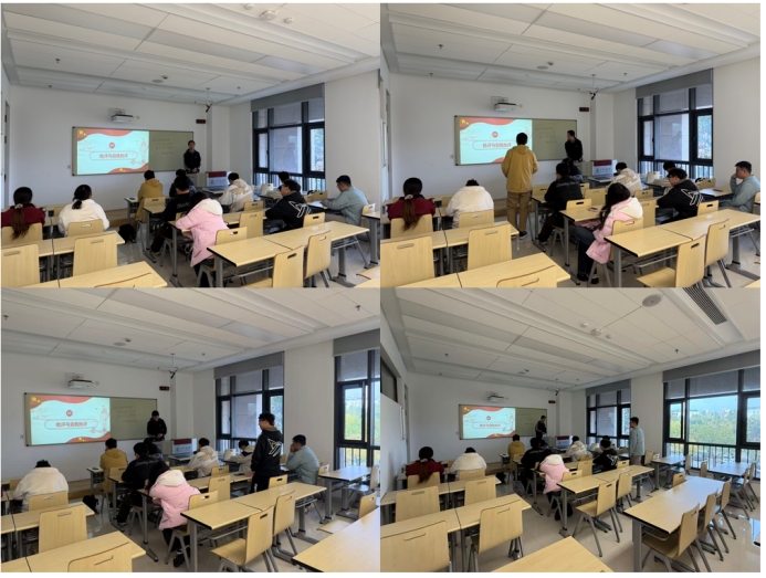 会议第二部分是报告分享,支部成员王梨麟同志做了以“携激扬奋斗豪情,共谱中国式现代化华章”为主题的报告分享。从社会主义革命和建设时期的奠基之路,到改革开放巨大进步的腾飞之路再到新时代巨大成就的跨越之路,王梨麟同志带领大家回望了新中国七十六载的奋斗历史。随后又从中国式现代化的五大特征中分析了中国式现代化的内涵与意义,最后呼吁大家作为青年一代,要勇担责任,以奋斗之姿绘就时代答卷。