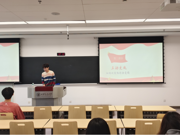 随后,活动进入第二个专题——“筑牢中华民族共同体意识”。高伟航同志以“像石榴籽一样紧紧抱在一起”为题,分享了新疆维吾尔自治区成立70周年的辉煌成就。他通过一组组对比鲜明的数据和图片,展现了新疆在党的领导下发生的翻天覆地的变化,深刻阐释了“铸牢中华民族共同体意识”作为新时代党的民族工作主线的重大意义。他强调,民族团结是各族人民的生命线,作为新时代的青年,我们不仅要从思想上认同,更要在行动上践行。他鼓励大家在日常学习生活中,尊重差异、增进理解,用真诚和善意浇灌民族团结之花,让“中华民族一家亲”的理念在青年心中生根发芽。