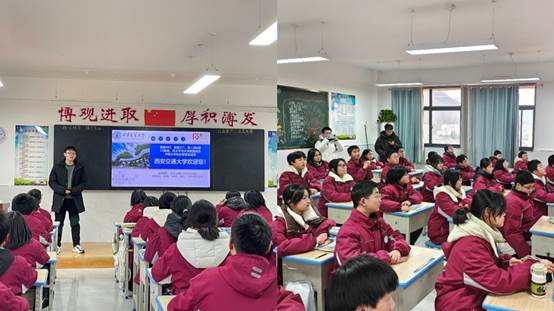 2026年1月21日,为传承西迁精神、播撒科教火种,激励青少年树立远大理想、厚植家国情怀,西安交通大学硕5065、5068等党团支部组建社会实践团,专程赴陕西省商洛市柞水县实验初级中学,为初二学生开展以“百年校史、西迁精神”为核心的主题宣讲活动。此次活动紧扣“传承红色基因、赋能青春成长”的宗旨,将西安交大的历史底蕴、学科魅力与精神内核转化为青少年易懂的知识养分,为几十位学生带来了一场兼具思想性与趣味性的“行走的思政课”。