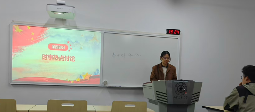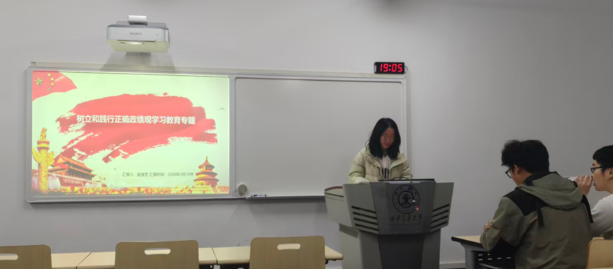 会议的第二阶段以“树立和践行正确政绩观”为核心主题。赵佳艺同志以时代背景与重要意义为切入点,为大家带来了一场主题分享。她结合青年学子的成长轨迹,细致阐释了政绩为谁而树以及靠什么树政绩等基本问题,引导大家对日常的学习和科研态度进行重新审视。