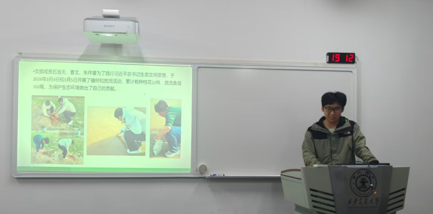 此次实践活动是对两会精神中生态文明理念的具体落实。活动结束后,石浩天同志向支部汇报了参与此次实践的切身体会。通过聆听汇报与观看活动记录,支部成员进一步加深了对绿色发展理念的理解,并表示将在日常生活中以实际行动做好生态环境的守护者。