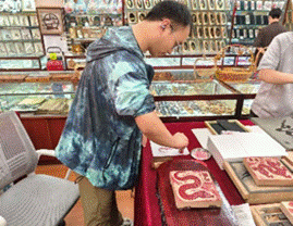 负责人结合展品,生动讲解了各项非遗技艺的历史渊源:从皮影戏的光影流转中,探寻古代民间艺术的娱乐智慧;从拓片的墨色肌理里,感受金石文化的传承密码;从剪纸的玲珑纹样中,品味民俗艺术的质朴灵动。同学们驻足凝视、认真聆听,不时轻声交流感悟,每一件非遗瑰宝都如立体史书,让大家直观领略到中华优秀传统文化的博大精深与独特魅力,心中的文化认同感油然而生。