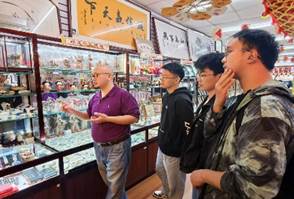 活动当日下午,在体验馆负责人的带领下,同学们开启了非遗文化探索之旅。馆内陈列的皮影戏道具、古旧拓片、精美剪纸、彩绘器物和文扇藏品,静静诉说着中华传统文化的千年底蕴。