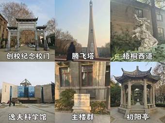 实践团队的首站,是承载着无数交大人记忆的兴庆校区。从复刻上海徐家汇老校门的创校纪念校门入校,走在梧桐西道,可见逸夫科学馆与兴庆主楼群,其整体布局和建筑风格都具有明显的时代特征,是西迁精神的见证和传承,对于研究西迁精神有着重要意义;古朴雅致的初阳亭、塔高耸入云的腾飞塔,体现了交通大学扎根西部办学的历史传承。