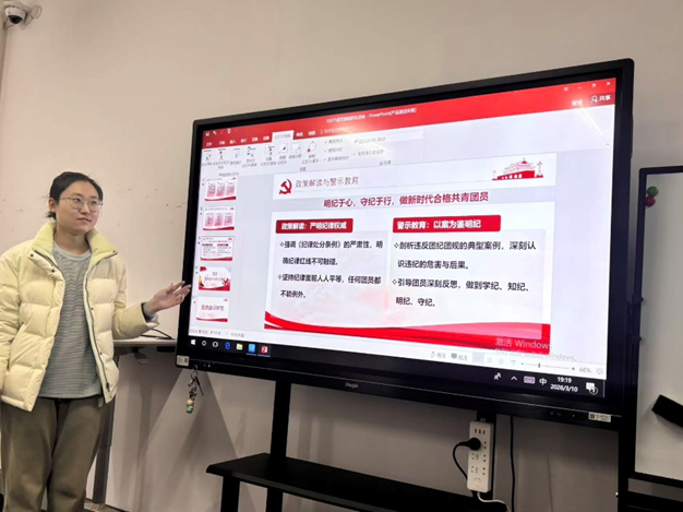 会议进入第二部分,重点学习了团纪团规与自我建设相关内容。宣传委员强调,共青团作为党的助手和后备军,严明的纪律是保持组织先进性、纯洁性的重要保障。每一位团员都必须做到学纪、知纪、明纪、守纪,时刻以团章为根本遵循,将纪律规矩内化为日常习惯和自觉遵循。
