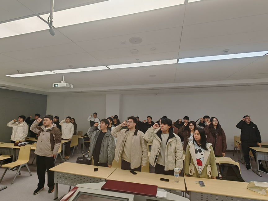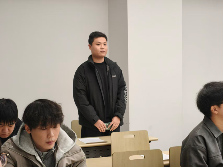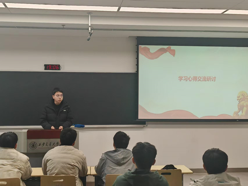 在集中学习环节后,团支部开展学习心得交流研讨,团员金炼根据自身学习感悟分享所思所获:他结合自身实际,把理论学习与学业科研、班级服务、社会实践等场景相结合,既谈收获与进步,也坦诚指出自身在理论学习深度、纪律意识践行等方面的不足,真正做到以高标准严格要求自己,进一步强化理论学习,强调纪律意识。