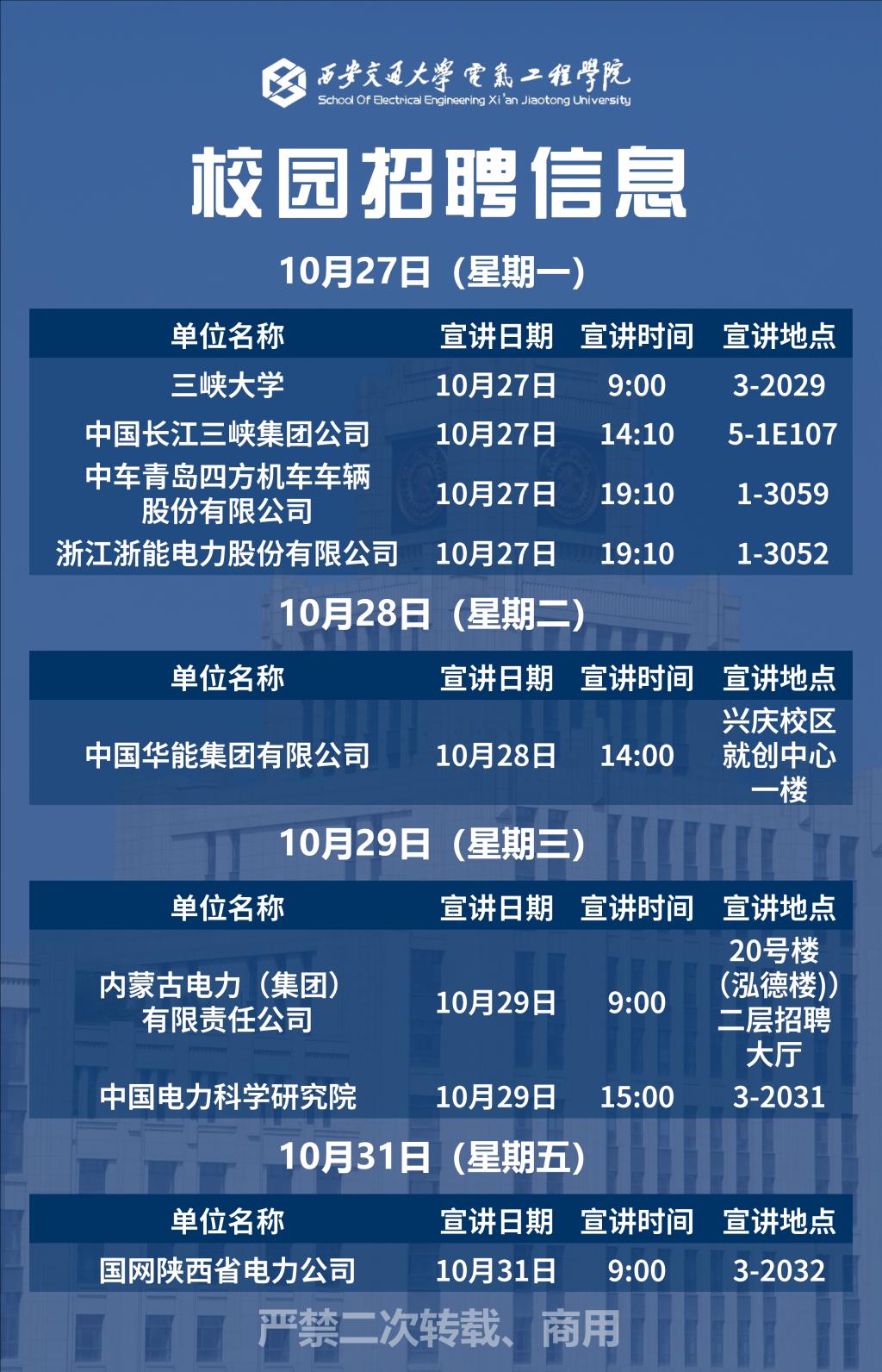 1、仅包含电气工程学院企业招聘信息。学校招聘信息可关注【西安交大就业创业】微信公众号。