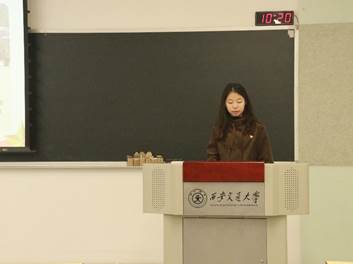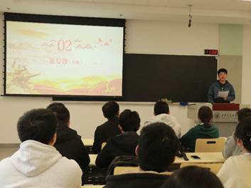 随后,谭依洋同学围绕延安精神和延安故事展开分享。他首先从延安精神诞生的时代背景和历史环境切入,详细阐释了延安精神“坚定正确的政治方向、解放思想实事求是的思想路线、全心全意为人民服务的根本宗旨、自力更生艰苦奋斗的创业精神”的四大核心精神内涵。接着,他结合“南泥湾大生产运动”“张思德为人民服务”等一系列经典的延安故事,生动展现了革命先辈在艰苦环境中坚守信仰、奋勇拼搏的精神风貌。最后,谭依洋同学还结合当代青年的使命与担当,阐述了延安精神对新时代学子的启示,鼓励大家将艰苦奋斗、求真务实的精神融入日常学习与生活。