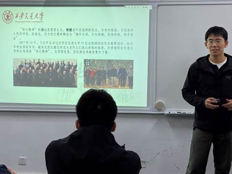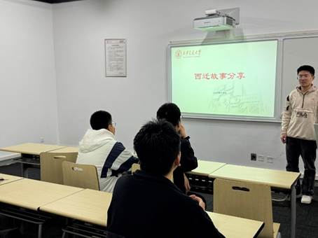 在参观学习的基础上,团支部组织了“西迁故事分享会”,组织委员苏劲宇通过讲述彭康老校长等西迁先辈的感人故事,让团员们从生动事例中感悟西迁精神的深刻内涵。