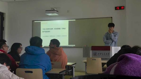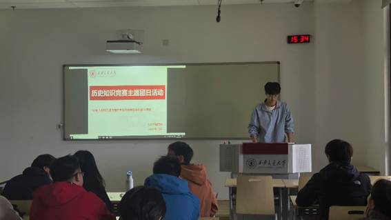 本次竞答内容紧扣抗战主题,不仅涵盖了中国共产党自成立以来的重大历史事件、重要思想理论、方针政策,还聚焦抗日战争时期的关键战役、英雄事迹、战略决策等内容,全方位、多层次地考察同学们对抗战历史及党史的掌握程度。随着题目逐一呈现在大屏幕上,现场氛围迅速升温。四个参赛小组摩拳擦掌,各组成员全神贯注地盯着题目,时而凝神思考、集体探讨;时而信心十足、踊跃抢答。其中,第三小组凭借对平型关大捷、百团大战等抗战关键战役的深入了解,在相关题目上频频得分,展现出扎实的知识功底。